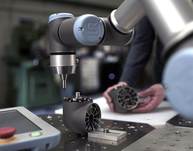 Tạo ra các quy trình lắp ráp chính xác, có thể lặp lại như vặn vít, vặn đai ốc, lắp ráp bộ phận và chèn vào trong khi giảm thiểu các chấn thương lặp đi lặp lại tại nơi làm việc. Với các cơ chế bộ chuyển đổi phù hợp, cánh tay robot cộng tác UR có thể xử lý việc lắp ráp nhựa, gỗ, kim loại hoặc các vật liệu khác. Nếu robot lắp ráp tiếp xúc với một người, công nghệ được cấp bằng sáng chế của chúng tôi sẽ hạn chế các lực tiếp xúc. Robot UR cũng có thể được lập trình để hoạt động ở chế độ giảm khi một người bước vào khu vực làm việc của robot và tiếp tục hoạt động ở tốc độ tối đa khi người đó rời đi.